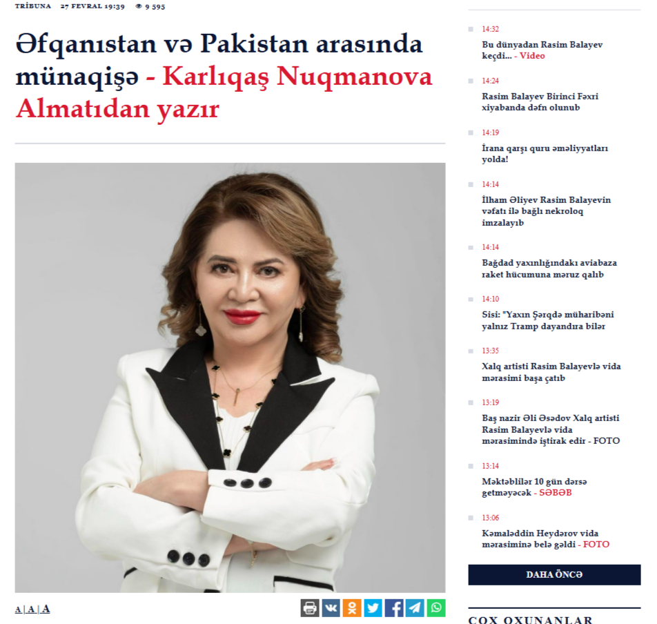 На информационном портале AzNews вышла статья Президента МЦГП «Восток-Запад», доктора политических наук, профессора К.Нугмановой в отношении развития вооруженного конфликта между Пакистаном и Афганистаном. Ситуация на «линии […]