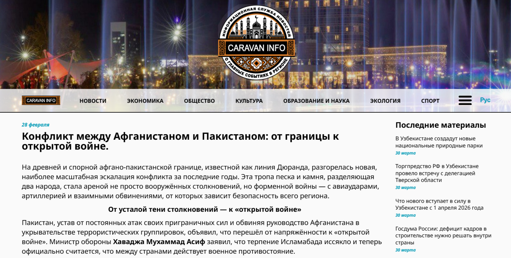 На информационном портале Сaravan-info.uz вышла статья Президента МЦГП «Восток-Запад», доктора политических наук, профессора К.Нугмановой, в которой обсуждается текущее развитие пакистано-афганского конфликта. На древней и спорной афгано-пакистанской […]